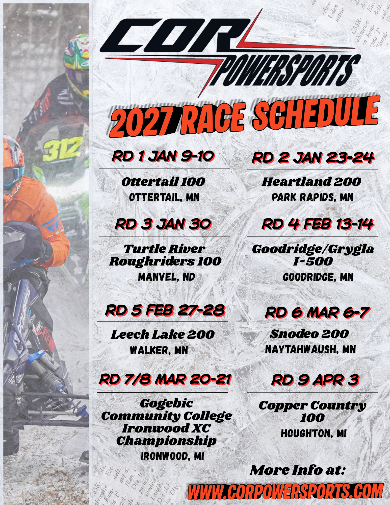 With that, we are thrilled to announce our 2027 Cor PowerSports Race Series schedule!